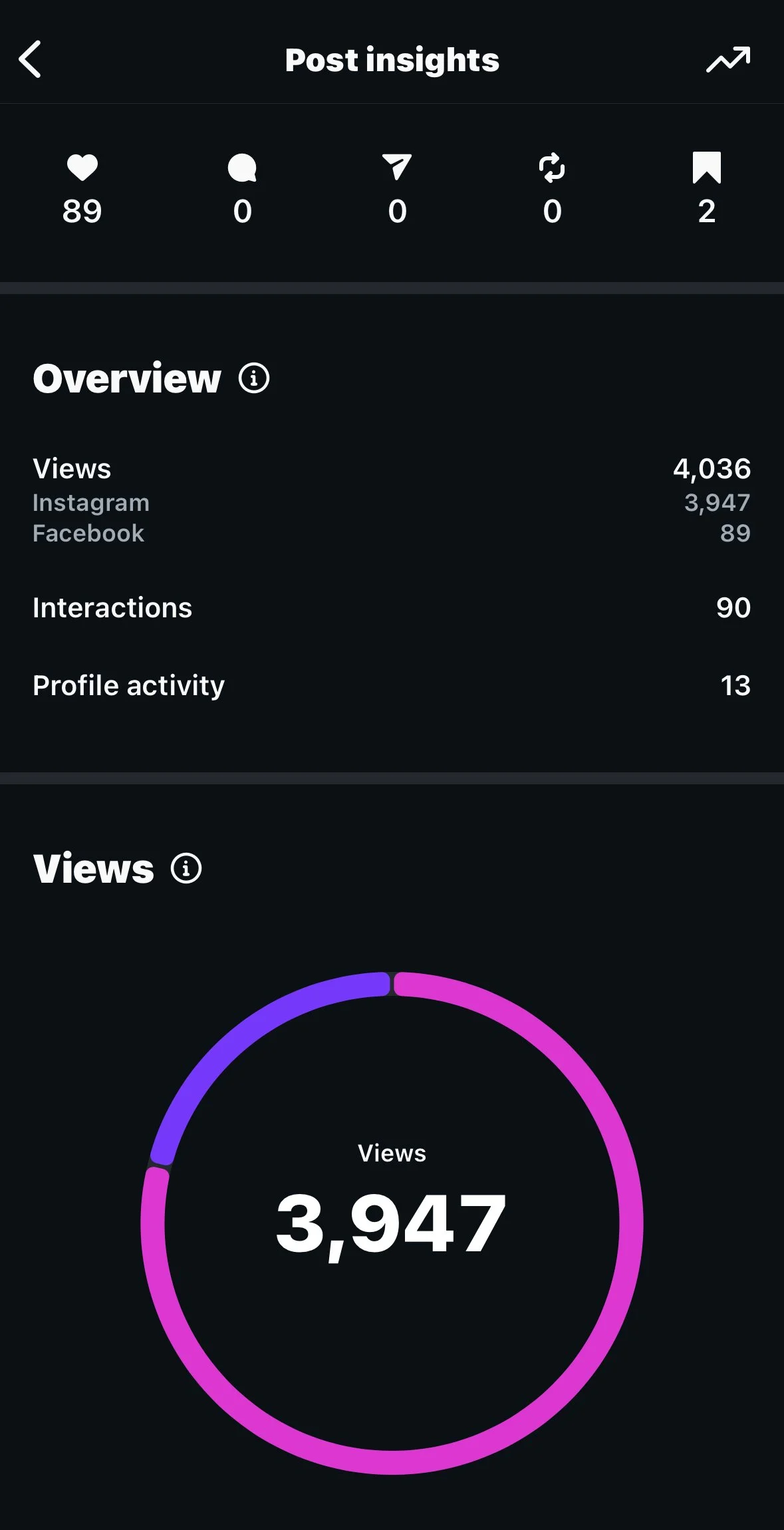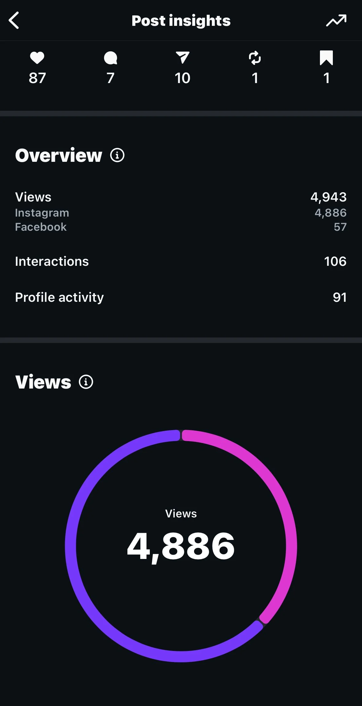 Highlights: This post gained just under 5,000 views across platforms and over 100 interactions. It was also shared ten times, which led to higher views over time.